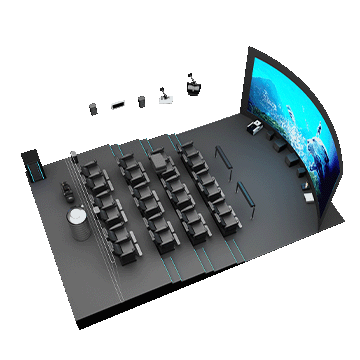 5D影院由三部分組成:立體投影系統(tǒng);振動(dòng)座椅和特效設(shè)備;計(jì)算機(jī)控制系統(tǒng)。這三者的協(xié)同作用形成一個(gè)系統(tǒng),刺激觀眾的視覺(jué)、聽覺(jué)、觸覺(jué)和感官,再現(xiàn)電影主題所涉及的環(huán)境、環(huán)境中的各種細(xì)節(jié)、讓觀眾感受身臨其境的整體效果。